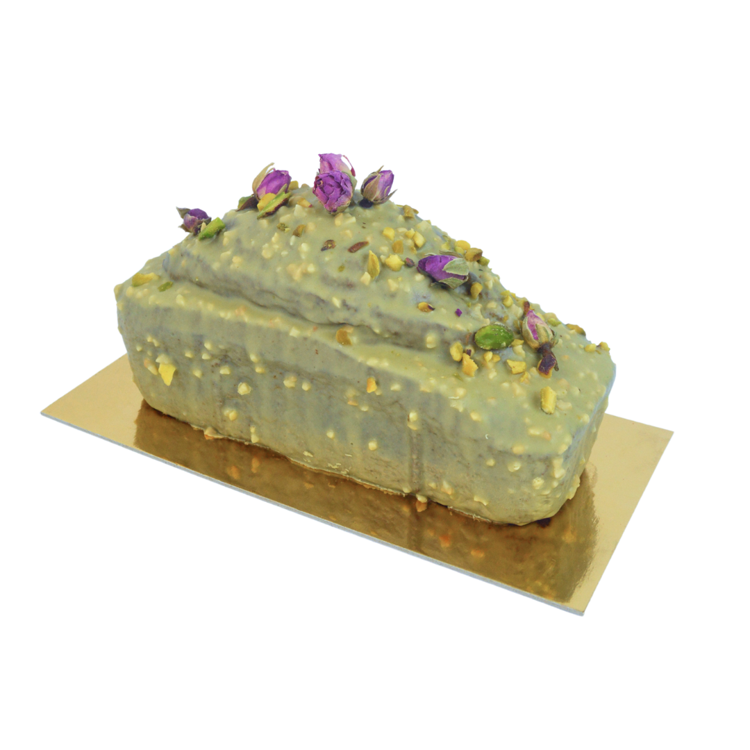 Minkštas pistacijų skonio keksas su skaldytomis pistacijomis ir vyšnių įdaru, padengtas pistacijų Gourme glazūra, apibarstytas pistacijų riešutais ir dekoruotas šventiniais pabarstukais. Puikiai tinka šeimos stalui ir saldžiai dovanai!
