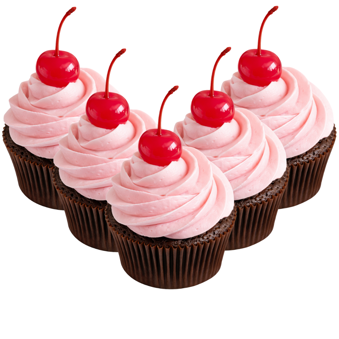 Dekoruoti keksiukai - su grietinėlės kremu ir vyšniomis. Nuo 12 vnt.