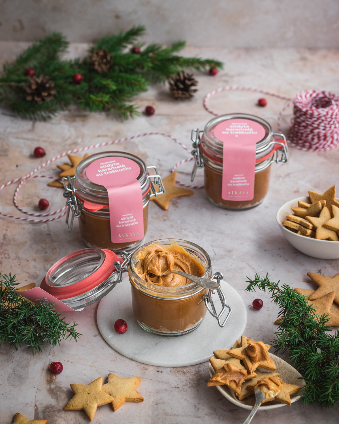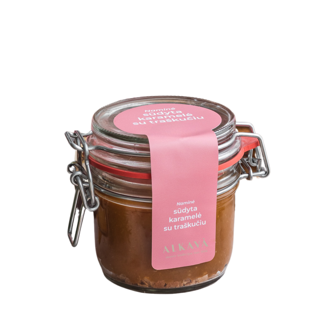 Burnoje tirpstanti sūdyta karamelė su paslėptu traškučiu. Puikiai tinka mėgaujantis kartu su imbieriniais sausainėliais.