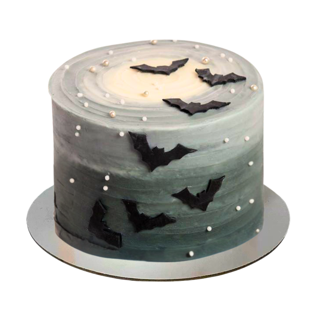 Grietinėle apteptas tortas su Helovyno nakties motyvais bei pabarstukais.