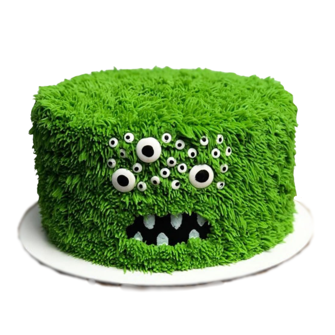Grietinėle dekoruotas tortas su pabaisiuko montstriuko motyvais.