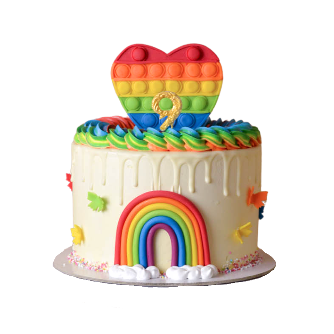Tortas VAIVORYKŠTĖ apteptas grietinėle su ryškiomis dekoracijomis.