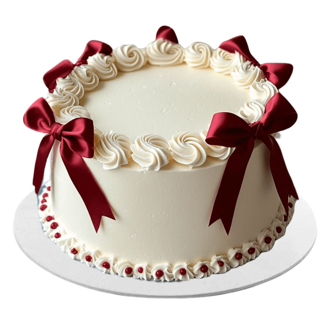 Vintažinio puošimo šventinis tortas su kaspinėliais.