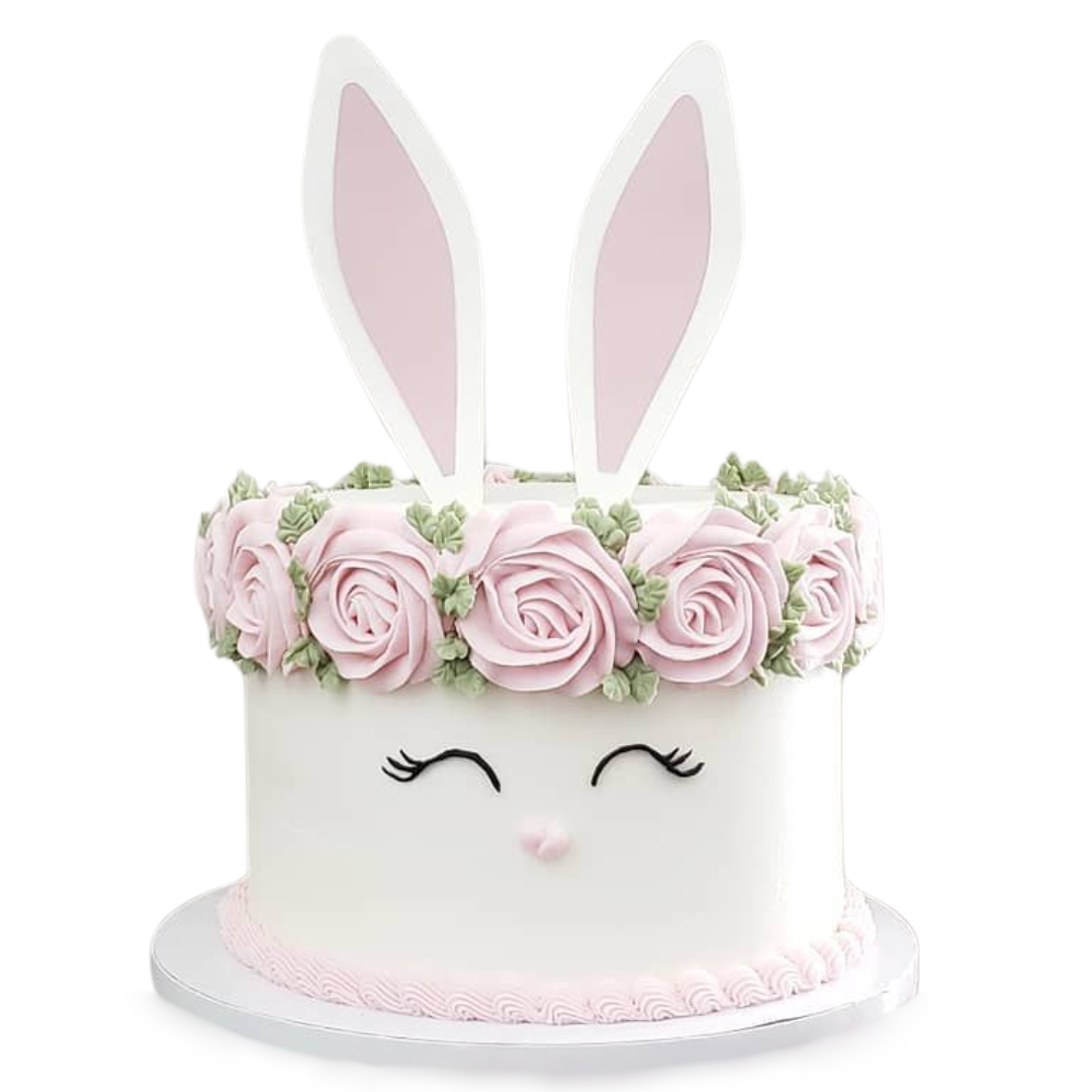 Tortas Zuikis su gėlių karūnėle ir pastelinėmis dekoracijomis.